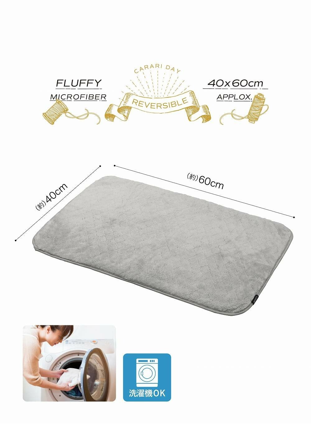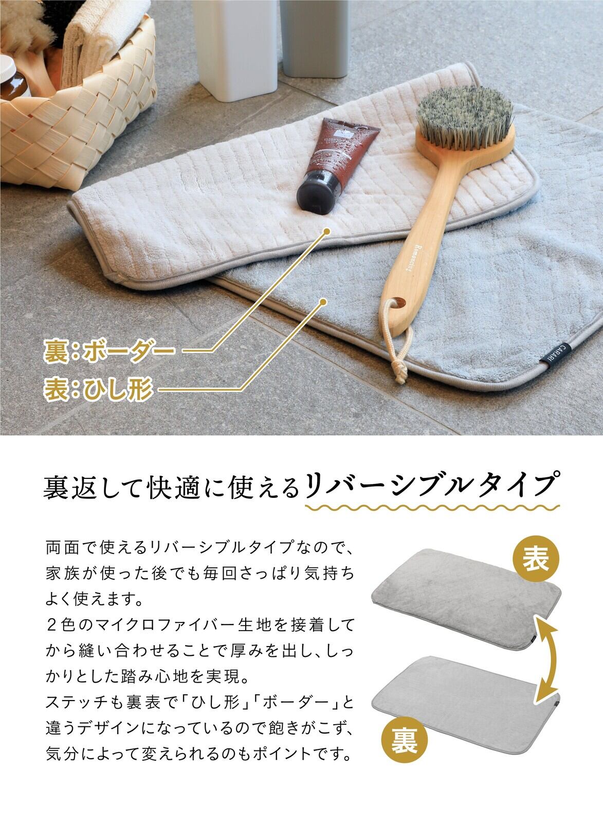 CB JAPAN カラリデイ リバーシブルバスマット グレー 触れるだけでサッと吸水