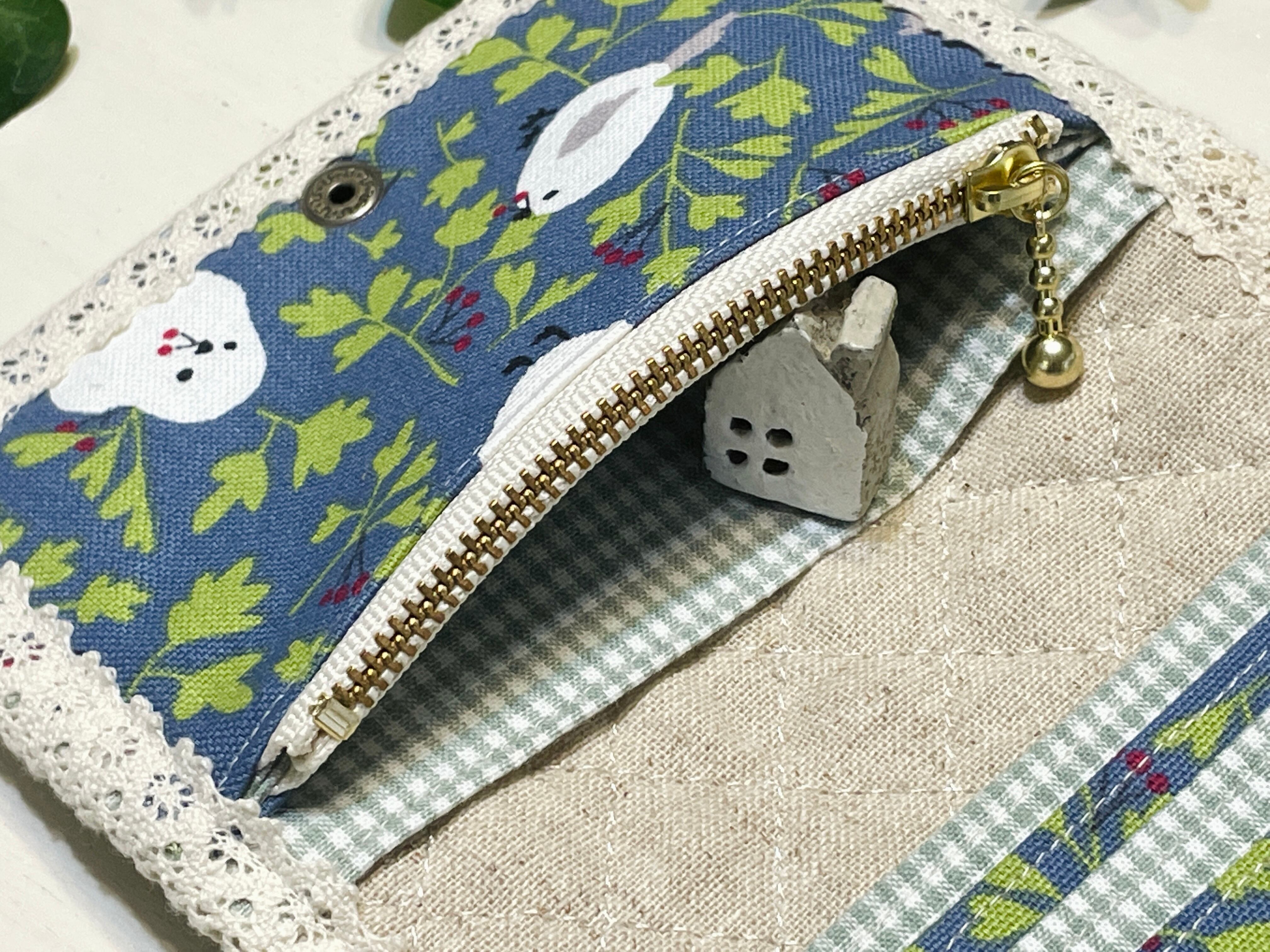 【ハンドメイド】 可愛いシマエナガさん柄♡ 二つ折り 財布 カード入れ・コインケース付き コンパクト ミニ財布